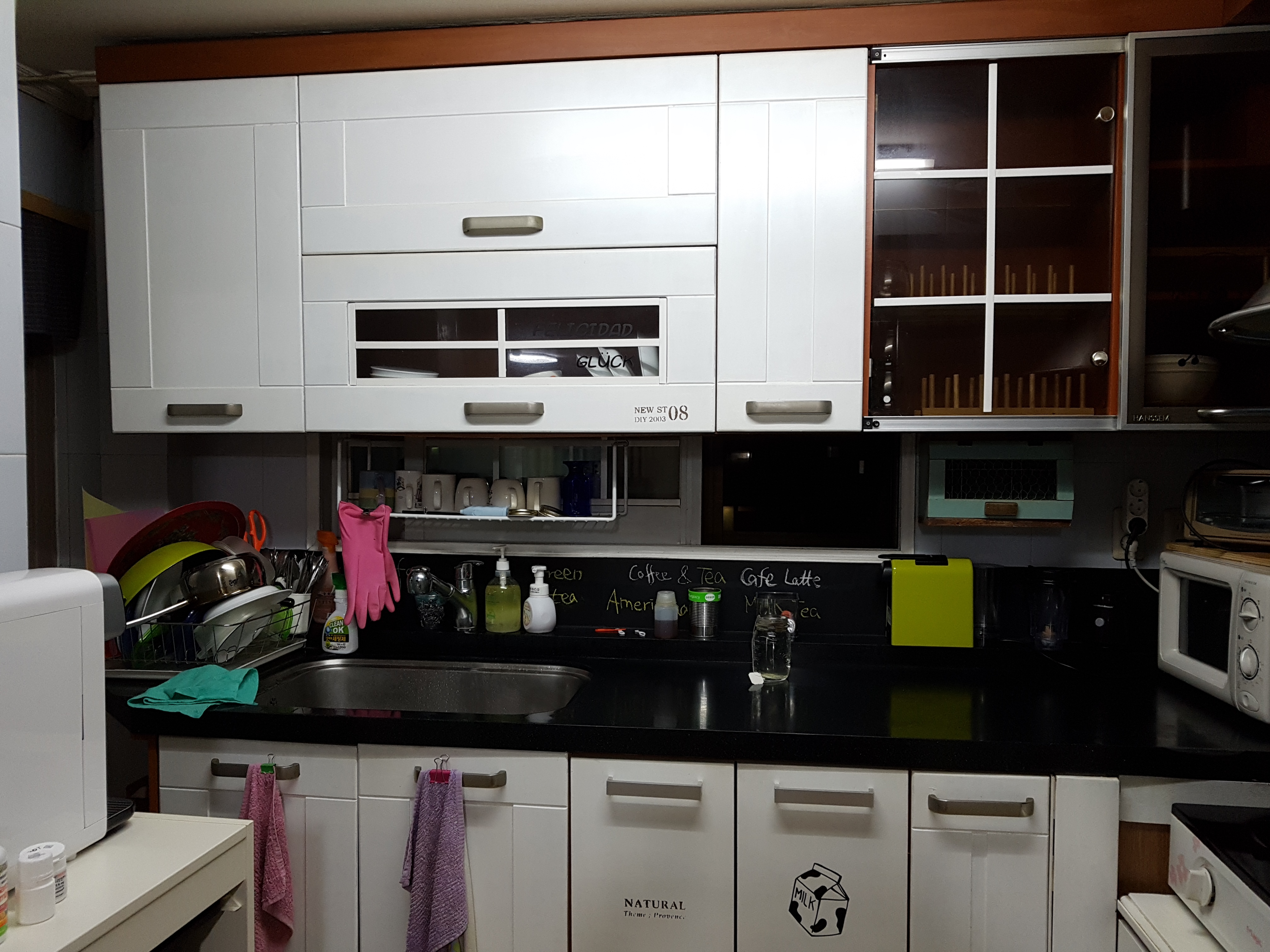 원래 예전 체리색 씽크였는데 제가 흰페인트 칠해서 쓰는거구요, 몰딩 체리색이 눈에 거슬리는데 이것도 변경 하고 싶네요