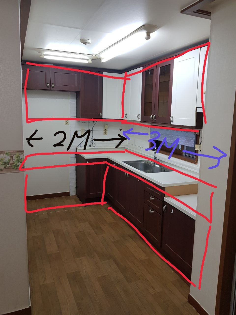 3m+2m 총5m의ㄱ자 상부장과 하부장으로 구성